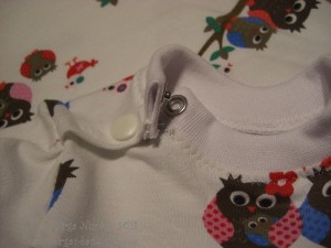 Auch dieses Mal mit rundem Ausschnitt und Knöpfen auf der Schulter, die Bündchenknöpfe habe ich verstecken können.